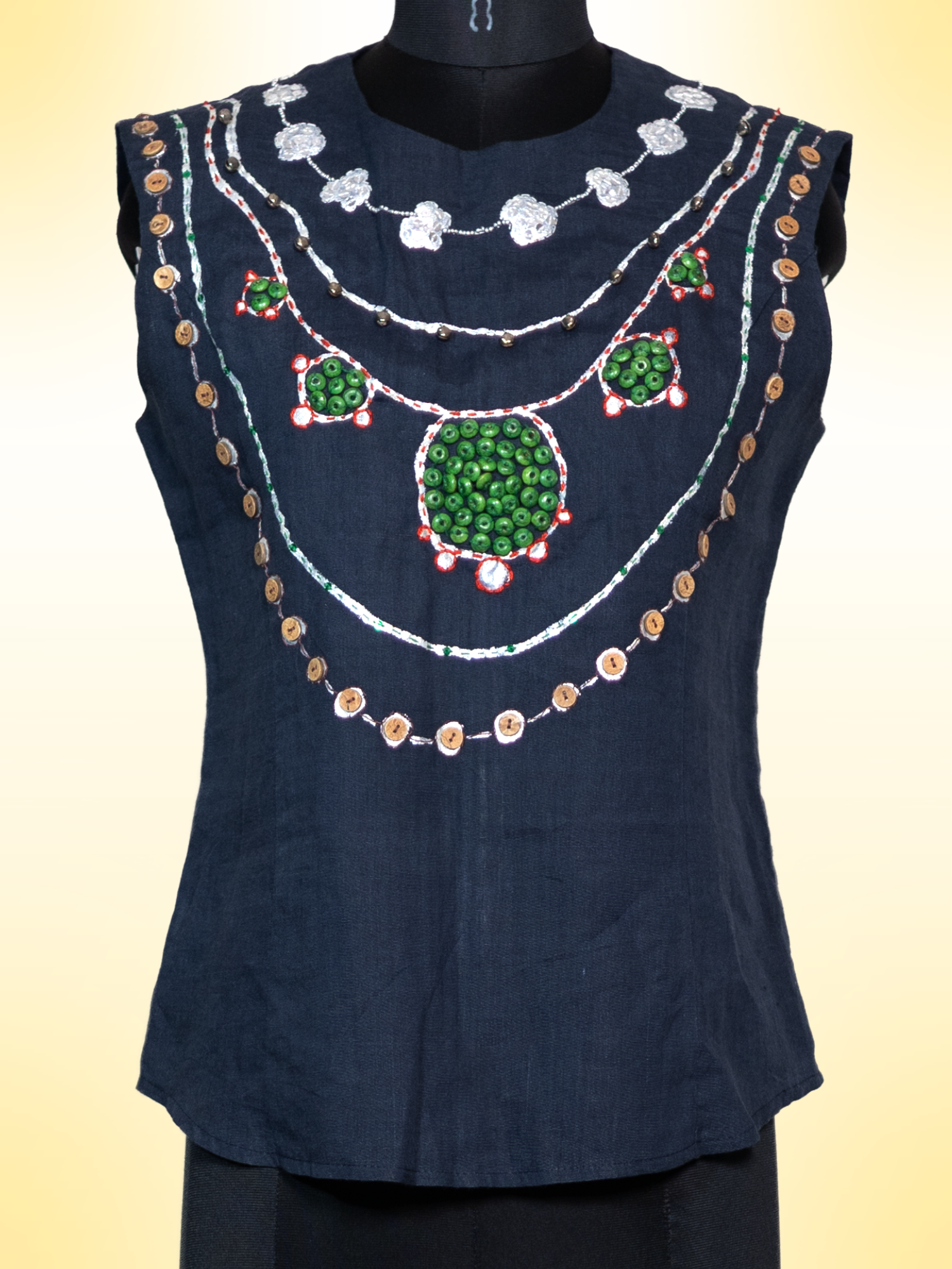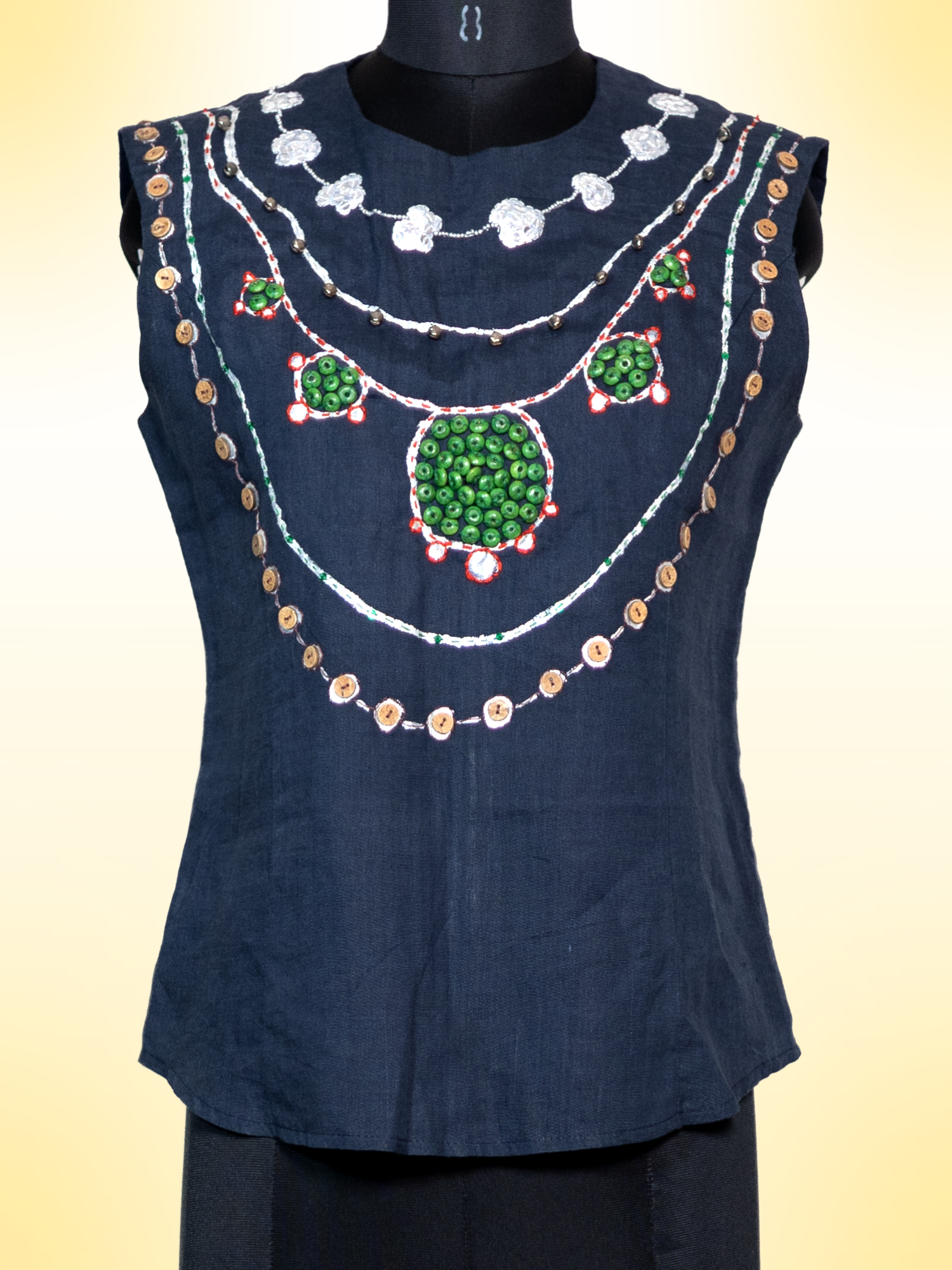 A one-of-a-kind piece from The Exotic Bohos Edition, handcrafted with hand painting, hand embroidery, beads, and sequins. Bold, expressive, and made to stand out—this is wearable art with a free-spirited soul.
