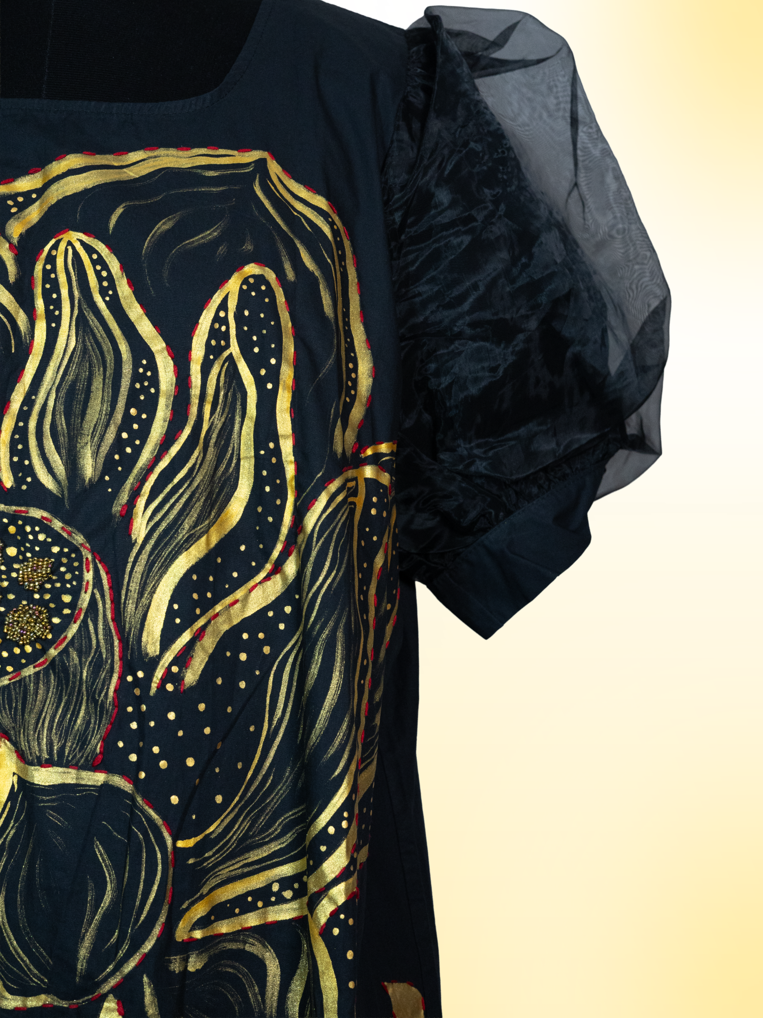 Inspired by blooming expression, this handcrafted piece from The Blossom combines hand painting, hand embroidery, and beads for timeless grace.
