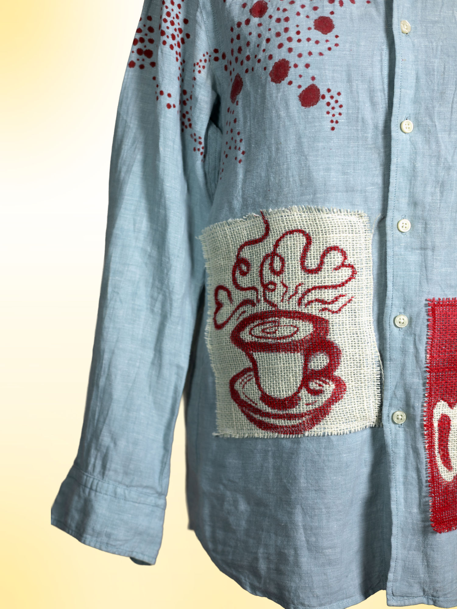 Infused with the warmth of The Caffeine Evenings, this handcrafted piece blends hand painting, hand embroidery, and beads with quiet, artful charm.