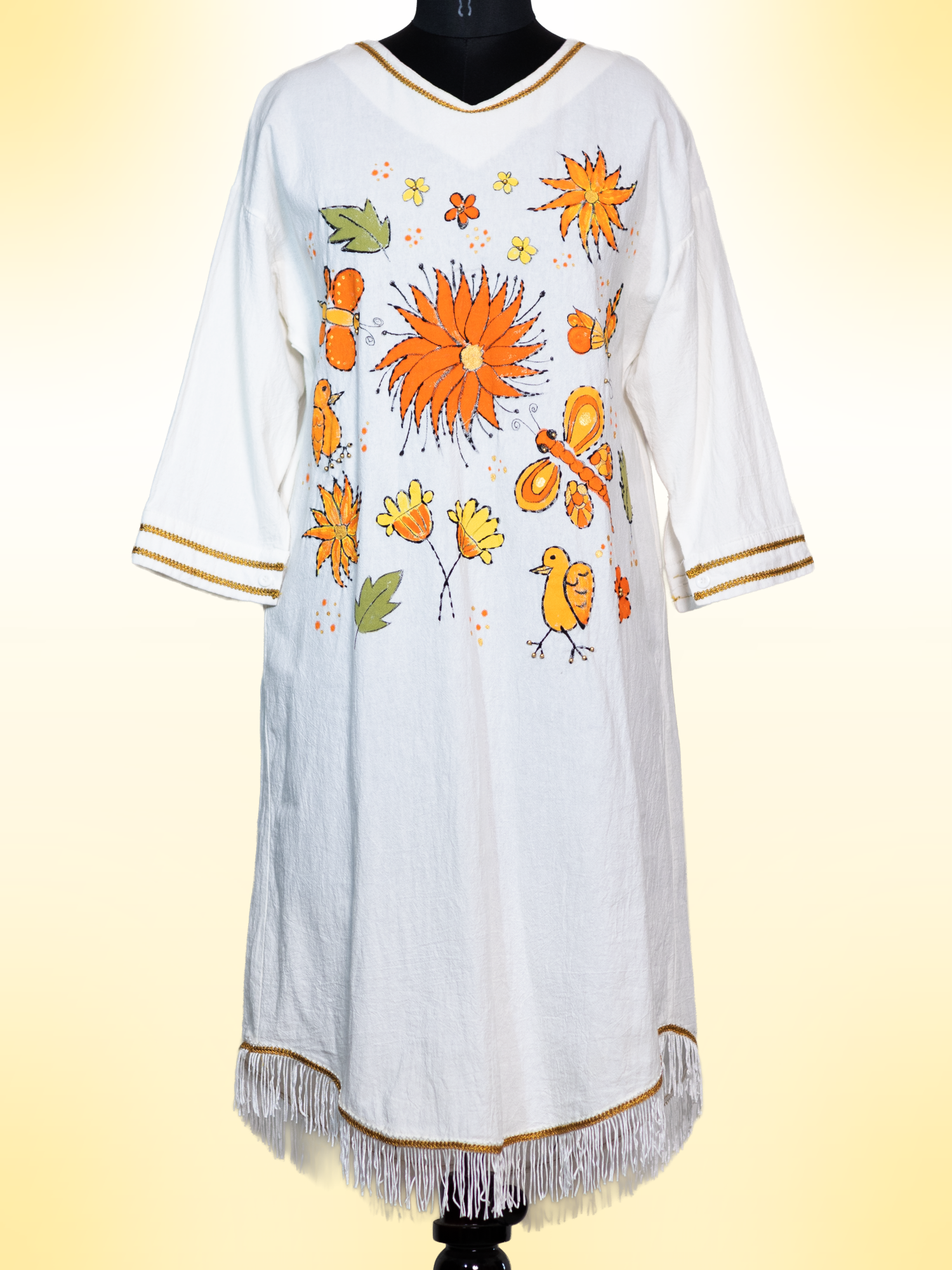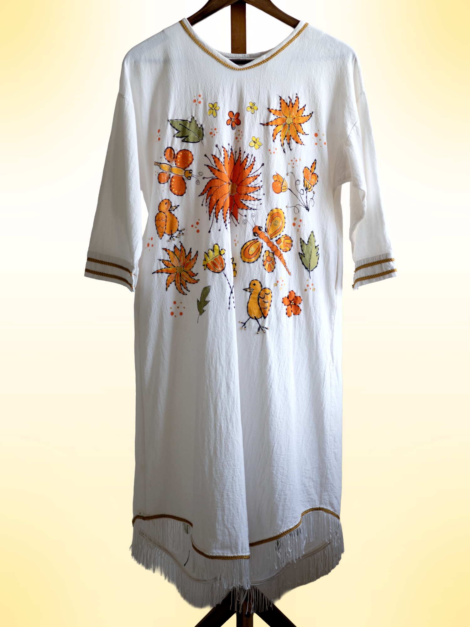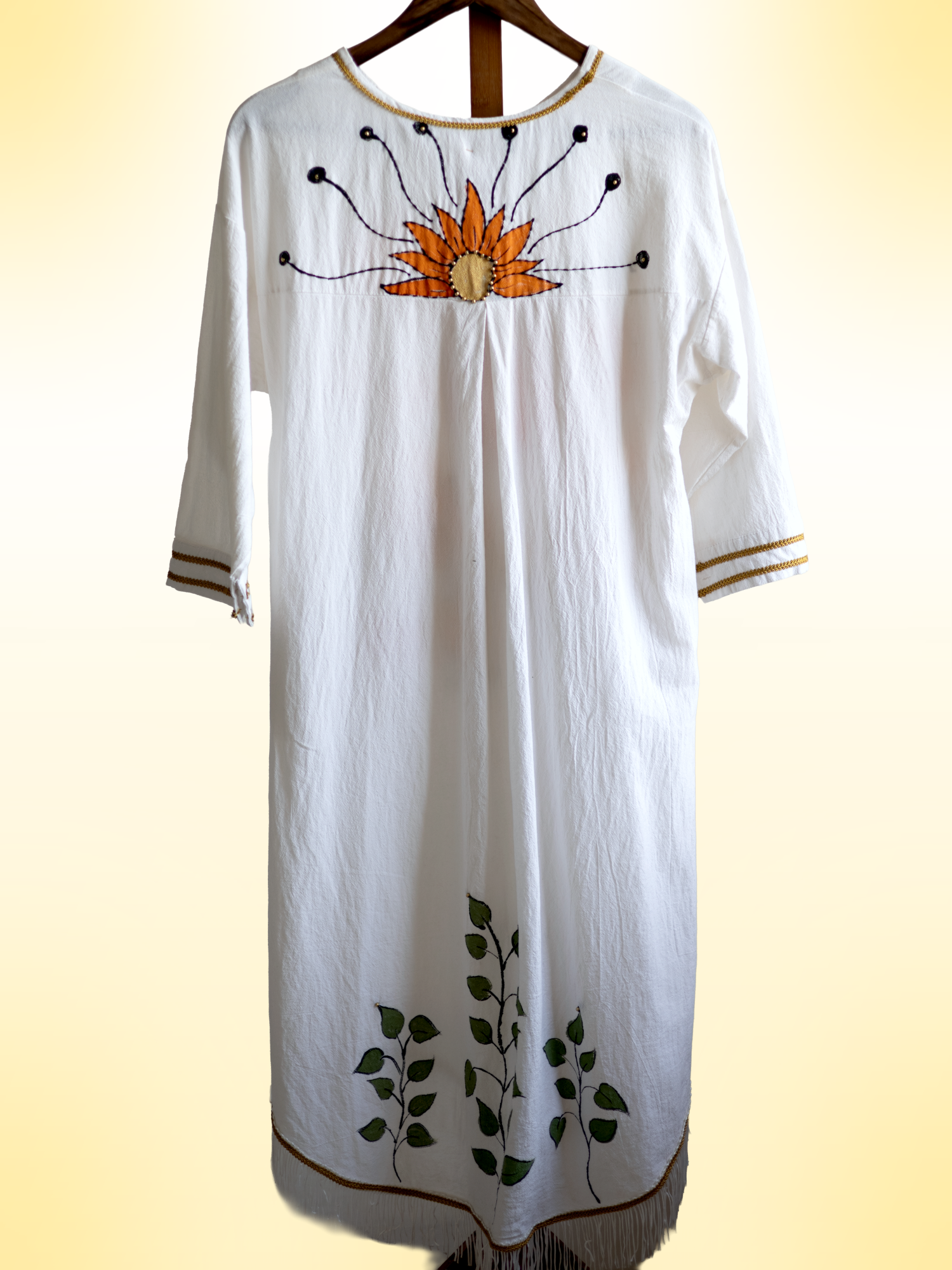 Inspired by the spirit of The Flora & Fauna, this handcrafted cotton dress blends artisanal details to create a one-of-a-kind piece of wearable art.